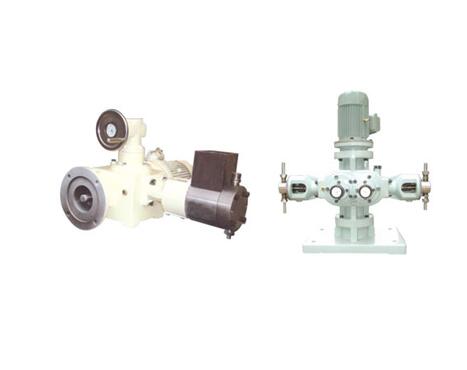 J系列計量泵分為柱塞式和液壓隔膜式兩種。電機與蝸桿剛性連接,蝸桿帶動蝸輪通過曲柄連桿傳動,流量調節為可變偏心滑軸調節機構,平緩脈動設計